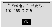IP 地址可能会更改并显示以下屏幕。当发生此情况时,使用此选项配置计算机上的打印机设置。否则,您可能无法从计算机打印到本机。