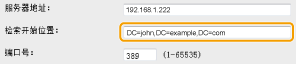 指定节点时,输入“DC=”后接主机名(Active Directory 域名中的句点分隔字符串),并用逗号分隔每个条目。例如,如果域名为“john.example.com”,则输入“DC=john,DC=example,DC=com”。