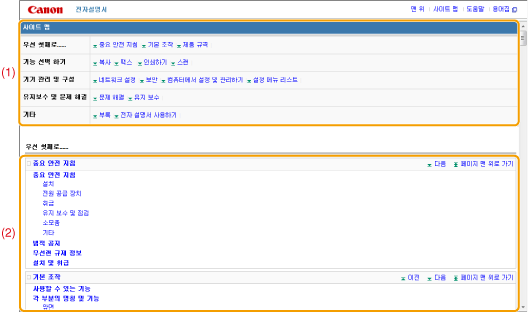 전자 설명서의 주제 카테고리를 표시합니다. 카테고리를 클릭하면 주제 목록이 표시됩니다.