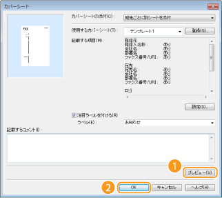 [プレビュー]をクリックして作成したカバーシートの内容を確認し、問題がなければ[OK]をクリックする