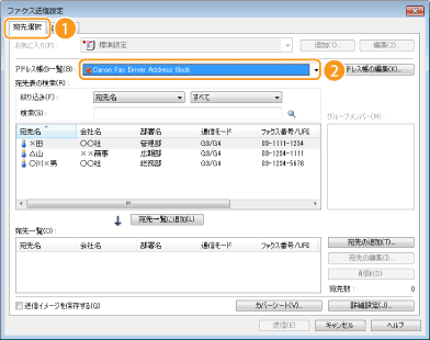 [宛先表の検索]で宛先の絞り込みや検索ができます。