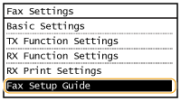Tap <Fax Settings>  <Fax Setup Guide>.