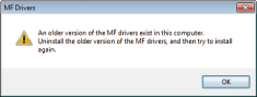 If an older version is already installed, a screen similar to the following appears when installing the new version, and installation is canceled. Uninstall the older version before installing the new version. Uninstalling |