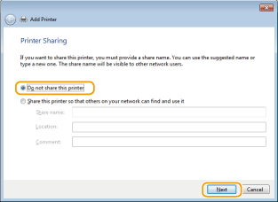Check that [LPT1] is selected under [Use an existing port], and click [Next].