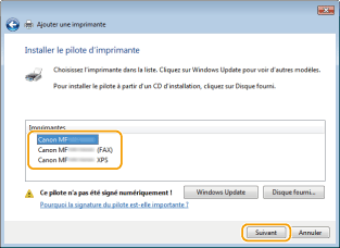 Sélectionnez votre imprimante puis cliquez sur [Suivant].