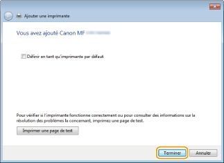 Si vous voulez partager l'imprimante, effectuez les réglages pour le partage de l'imprimante ajoutée à l'aide de