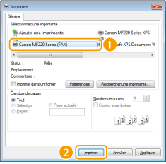 Sélectionnez le pilote de fax et cliquez sur [Imprimer].