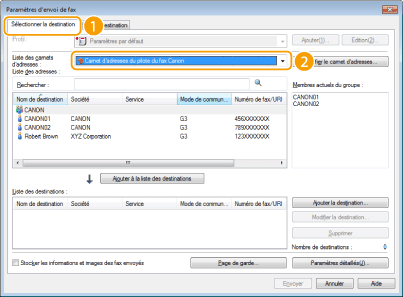 Sélectionnez le carnet d'adresse dans [Liste des carnets d'adresses].