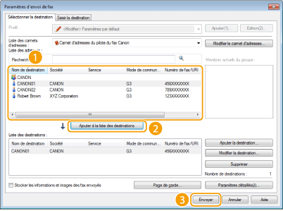 Sélectionnez un destinataire et cliquez sur [Ajouter à la liste des destinations].