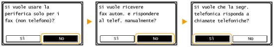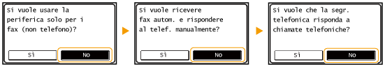 Se precedentemente si era selezionato <Configurare più tardi> nella schermata di impostazione del fax (Registrazione del numero di fax e del nome dell'unità), <Impostazioni fax>