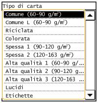 Se l'impostazione non corrisponde a formato e tipo della carta caricata, può verificarsi un errore di stampa o inceppamento della carta.