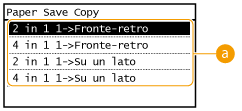 Le impostazioni di stampa fronte-retro <Paper Save Copy> potrebbero non essere disponibili con alcuni formati e tipi di carta. Carta