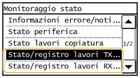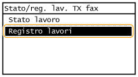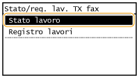 ![]() <Stato lavori TX fax>/<Stato lavori RX fax>Visualizza un elenco di documenti in corso di invio e ricezione o in attesa di elaborazione.
