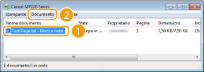 Selezionare il documento nella schermata <Stato lavori di stampa>