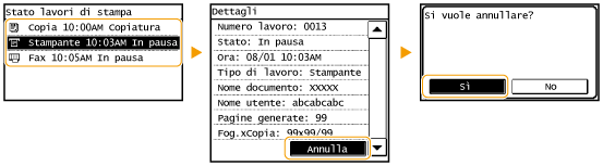 Annullamento dalla IU remotaÈ possibile annullare la stampa dalla pagina [Stato lavoro] sulla IU remota: Controllo dello stato corrente dei documenti di stampa