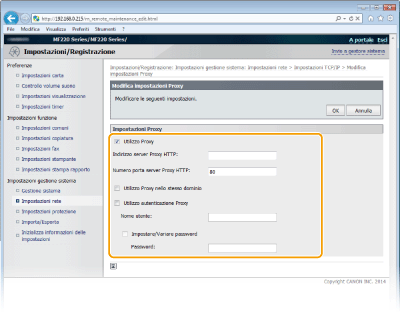 Selezionare la casella di controllo [Utilizzo Proxy] e specificare le impostazioni richieste.