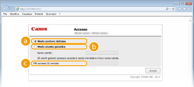 È possibile eseguire tutte le operazioni e impostazioni della IU remota. Inserire il PIN in [PIN gestore sistema] (