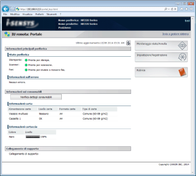 Digitare "http://(indirizzo IP della macchina)/" nella barra degli indirizzi e premere tasto [INVIO].