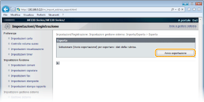 * In base al modello, non è possibile impostare la Rubrica esportata dalla macchina.