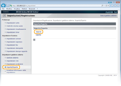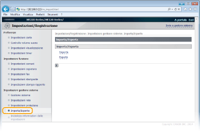 Non utilizzare la macchina durante il processo di importazione/esportazionePrima di esportare/importare, accertarsi che non siano in corso operazioni come la stampa di documenti.