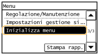 Selezionare per ripristinare le impostazioni elencate di seguito ai valori predefiniti. È possibile ripristinare tutte le impostazioni contemporaneamente, oppure ripristinare le singole impostazioni separatamente. Inizializzazione del menu