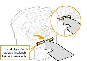 Estrarre delicatamente l'eventuale carta che si trova tra il gruppo di fissaggio (