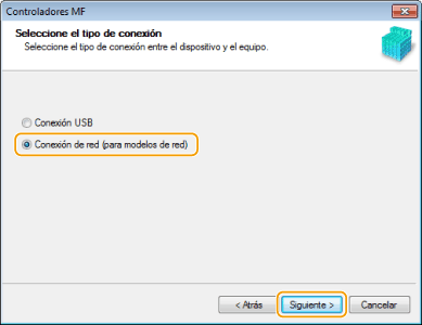Seleccione [Conexión de red] y haga clic en [Siguiente].