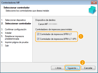 Seleccione los controladores que desea instalar y haga clic en [Siguiente].