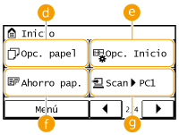La pantalla <Inicio> se muestra cuando se enciende el equipo o pulsando