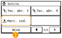 en el panel de control. Utilice esta pantalla para especificar la configuración y registrar funciones.