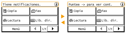 Cuando aparezca <Tiene notificaciones.> o <Puntee en icono dcha. ->>
