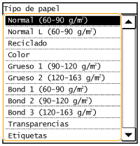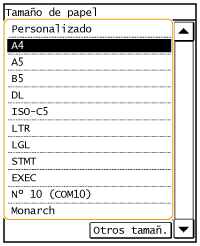 Los tamaños de papel no marcados se muestran en la pantalla <Otros tamaños>.