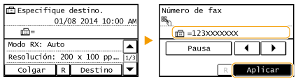 Pulse <Pausa> para introducir una pausa al final del número de fax según sea necesario.