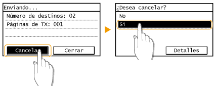 Si desea cancelar el envío de faxes inmediatamente después de pulsar