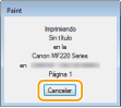 Cancelación desde una aplicaciónEn algunas aplicaciones, aparecerá una pantalla como la siguiente. Puede cancelar la impresión haciendo clic en [Cancelar].