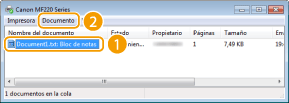 Seleccione el documento en la pantalla <Estado trab. impresión>