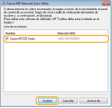 Manuales incluidos en el equipo). Para realizar la conexión a través de una red inalámbrica o cableada, deberá registrar este equipo en MF Network Scan Utility. Regístrelo siguiendo el procedimiento que se indica a continuación. Este procedimiento no será necesario si el equipo y el ordenador están conectados a través de USB.