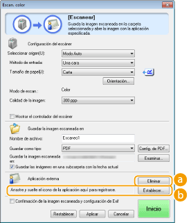 ), [Guardar la imagen escaneada en] cambia a [Crear archivo PDF basado en]. En este caso, especifique un archivo PDF existente en el que desee añadir los datos de documento recientemente escaneados. Los datos se añaden al archivo existente como páginas adicionales (Adición de páginas a un archivo PDF existente).