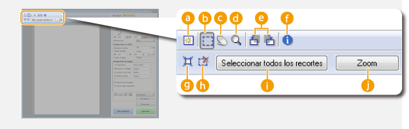 Si coloca el documento en el cristal de la platina y hace clic en [Vista preliminar], aparecerá una imagen de vista preliminar. Puede especificar el área que desea escanear y comprobar los efectos de los ajustes de imagen en la imagen de vista preliminar.