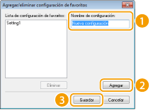 Introduzca un nombre en [Nombre de configuración], y haga clic en [Agregar]
