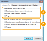 Haga clic en [Preferencias] para configurar varias opciones, incluido el funcionamiento durante el escaneado.