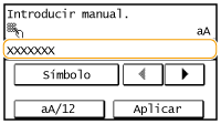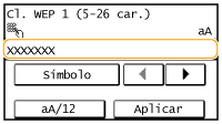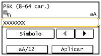 Introduzca la clave de red utilizando las teclas numéricas, y pulse <Aplicar>.Introducción de texto