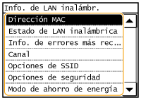 <Información de LAN inalámbrica> y seleccione la opción que desee visualizar.