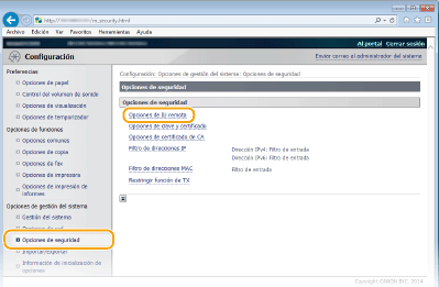 Marque la casilla de verificación [Usar PIN de acceso de IU remota] y establezca el PIN.