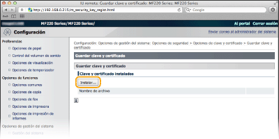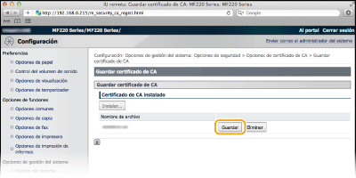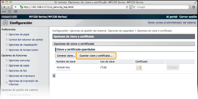 Haga clic en [Guardar clave y certificado] o [Guardar certificado de CA].