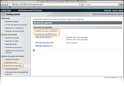 Haga clic en [Opciones de seguridad]