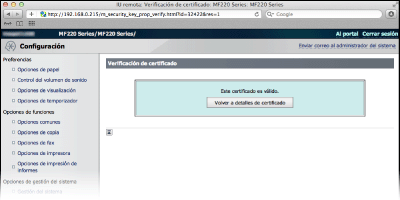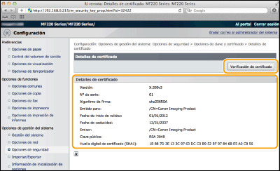 Haga clic en [Verificación de certificado].