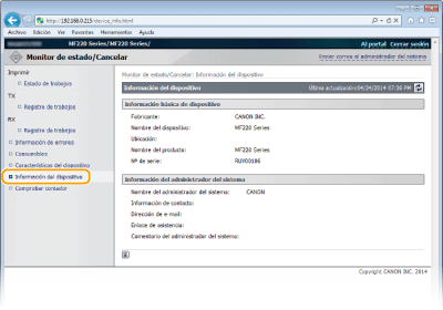 [Información del dispositivo]