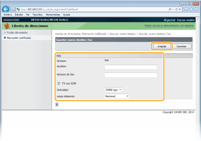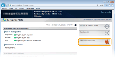 Registro de la libreta de direcciones desde la IU remota