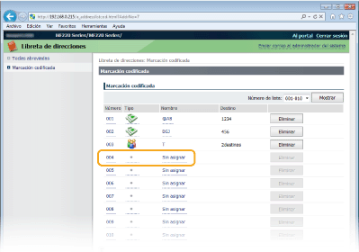 También podrá registrar destinos en los botones de marcación abreviada. En este caso, haga clic en [Teclas abreviadas] en lugar de [Marcación codificada].